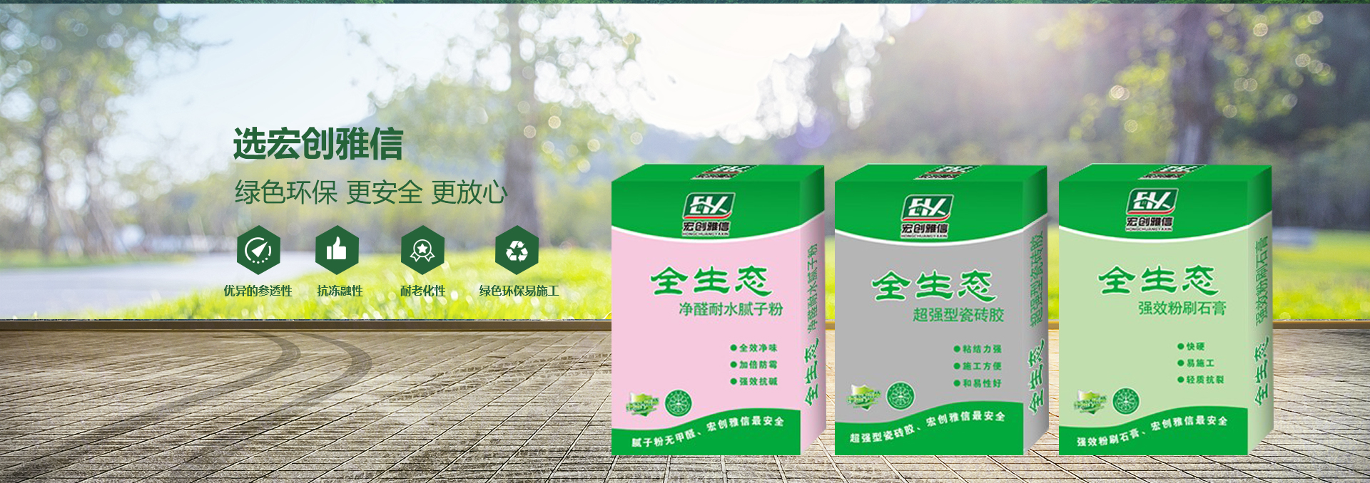 宏創(chuàng)雅信裝飾材料北京有限公司(威海分公司)是一家生產(chǎn),研發(fā),運輸,施工綜合性股份制企業(yè),主要產(chǎn)品:快粘粉、嵌縫石膏、內(nèi)外墻耐水膩子粉、內(nèi)墻超細(xì)膩子粉、高強石膏、粉刷石膏、瓷磚粘接劑、填縫劑、內(nèi)外墻防水涂料、108膠、聚合物粘接砂漿、聚合物抗裂抹面砂漿、灰鈣、重質(zhì)碳酸鈣、砌筑砂漿、膠粉聚苯顆粒、浮雕骨料、玻化微珠保溫砂漿、FTC相變節(jié)能保溫砂漿、SF增水保溫砂漿、等產(chǎn)品。